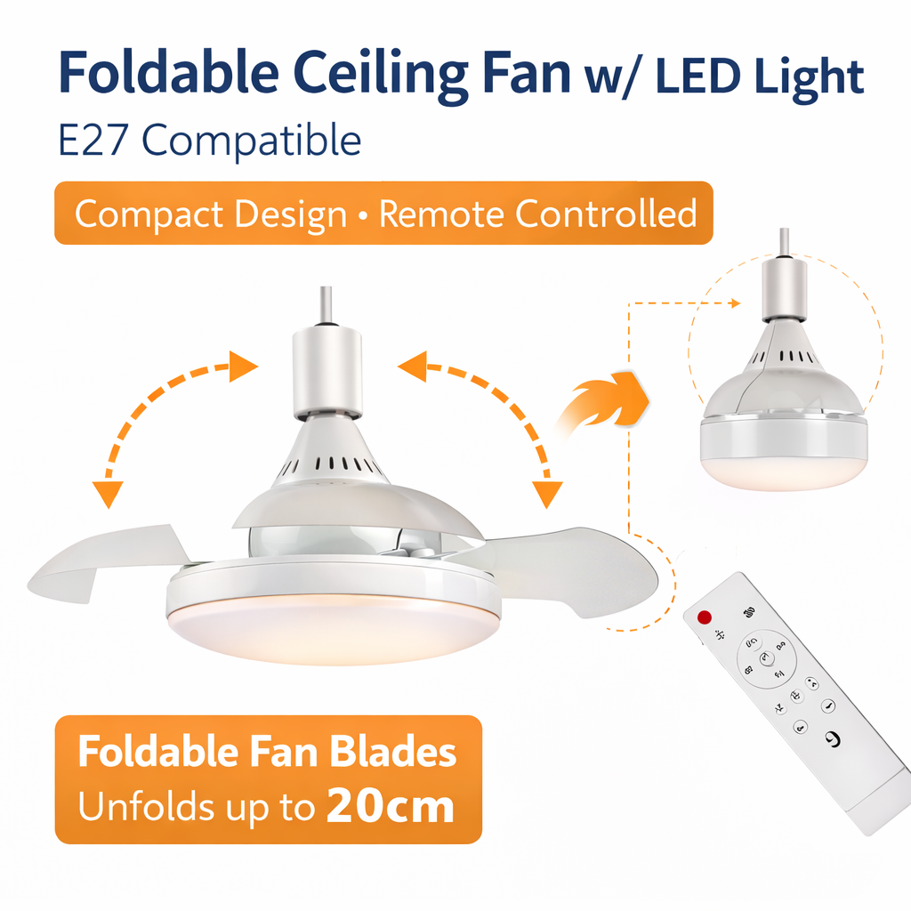 Ανεμιστήρας Οροφής 20cm με LED Φωτιστικό E27 & Τηλεχειριστήριο 120W
