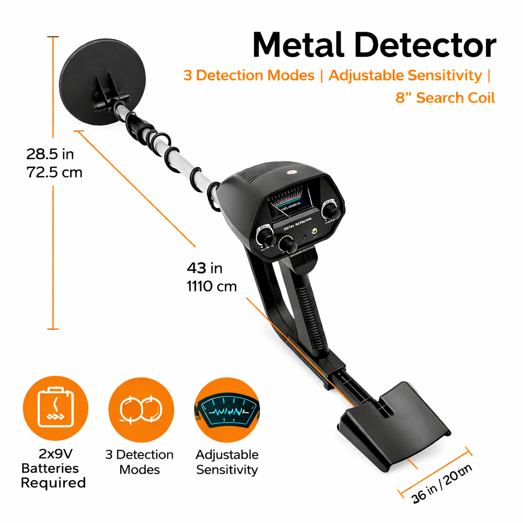 Αξιόπιστος και εύχρηστος ανιχνευτής μετάλλων εδάφους 110cm, ιδανικός για αρχάριους και ερασιτέχνες που θέλουν να εντοπίζουν μεταλλικά αντικείμενα με ακρίβεια. Διαθέτει τηλεσκοπικό κοντάρι για άνετη προσαρμογή στο ύψος και εύκολη χρήση σε κάθε τύπο εδάφους.