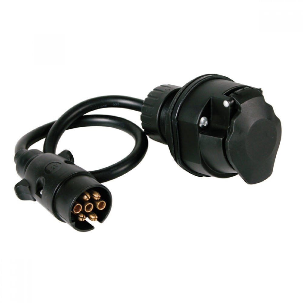 Αντάπτορας (προσαρμογέας μείωσης) για συσκευές ρυμούλκησης αυτοκινήτων και ρυμουλκουμένων. Σχεδιασμένος για οχήματα με υποδοχή 7 ακίδων – pin και ρυμουλκούμενο με βύσμα 13 ακίδων – pin. Κατάλληλο για χρήση με τάση 12-24 V.