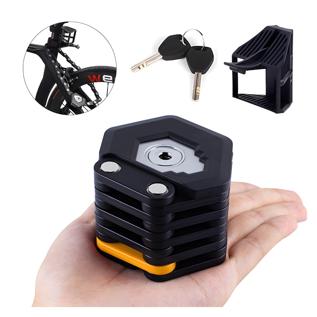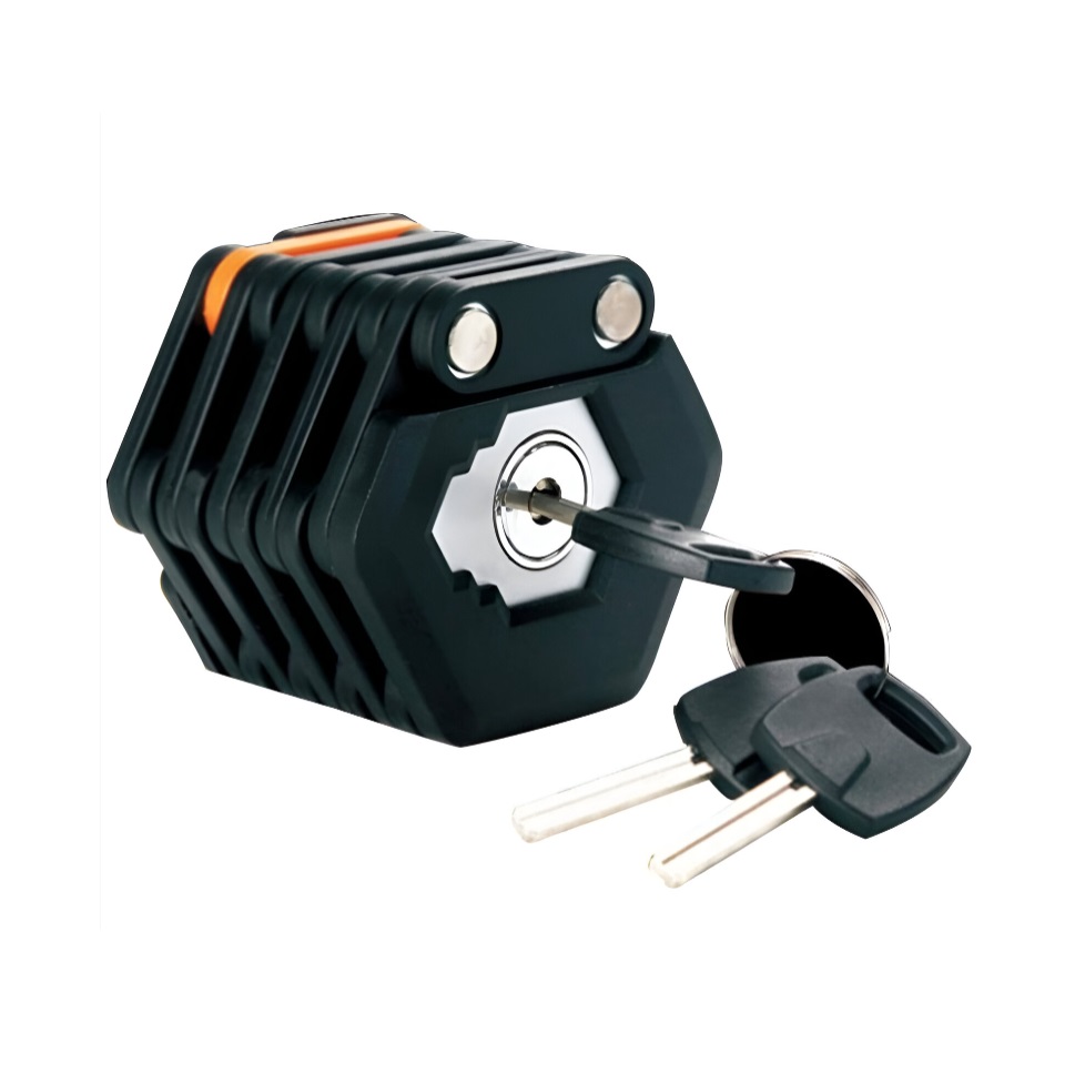 Εξασφαλίστε την προστασία του ποδηλάτου ή του σκούτερ σας με αυτήν την ισχυρή αναδιπλούμενη κλειδαριά μήκους 780mm. Σχεδιασμένη με έμφαση στην αντοχή και τη φορητότητα, προσφέρει κορυφαία ασφάλεια κατά της κλοπής, ενώ η πτυσσόμενη κατασκευή της επιτρέπει εύκολη αποθήκευση και μεταφορά. Ιδανική για αστική χρήση, αλλά και για ποδηλάτες που κινούνται σε απαιτητικά περιβάλλοντα.
