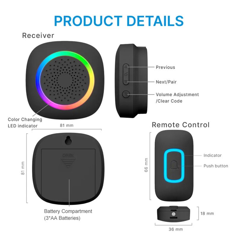 Το ασύρματο κουδούνι πόρτας με LED φωτισμό προσφέρει αξιόπιστη ειδοποίηση επισκέπτη με ήχο και οπτική ένδειξη, αποτελώντας ιδανική λύση για σπίτια, διαμερίσματα και επαγγελματικούς χώρους. Η ασύρματη λειτουργία επιτρέπει εύκολη εγκατάσταση χωρίς καλωδίωση, ενώ η μεγάλη εμβέλεια εξασφαλίζει σταθερή λειτουργία ακόμη και σε μεγαλύτερους χώρους.