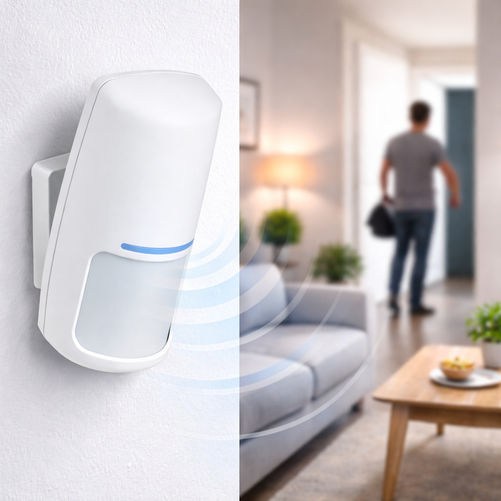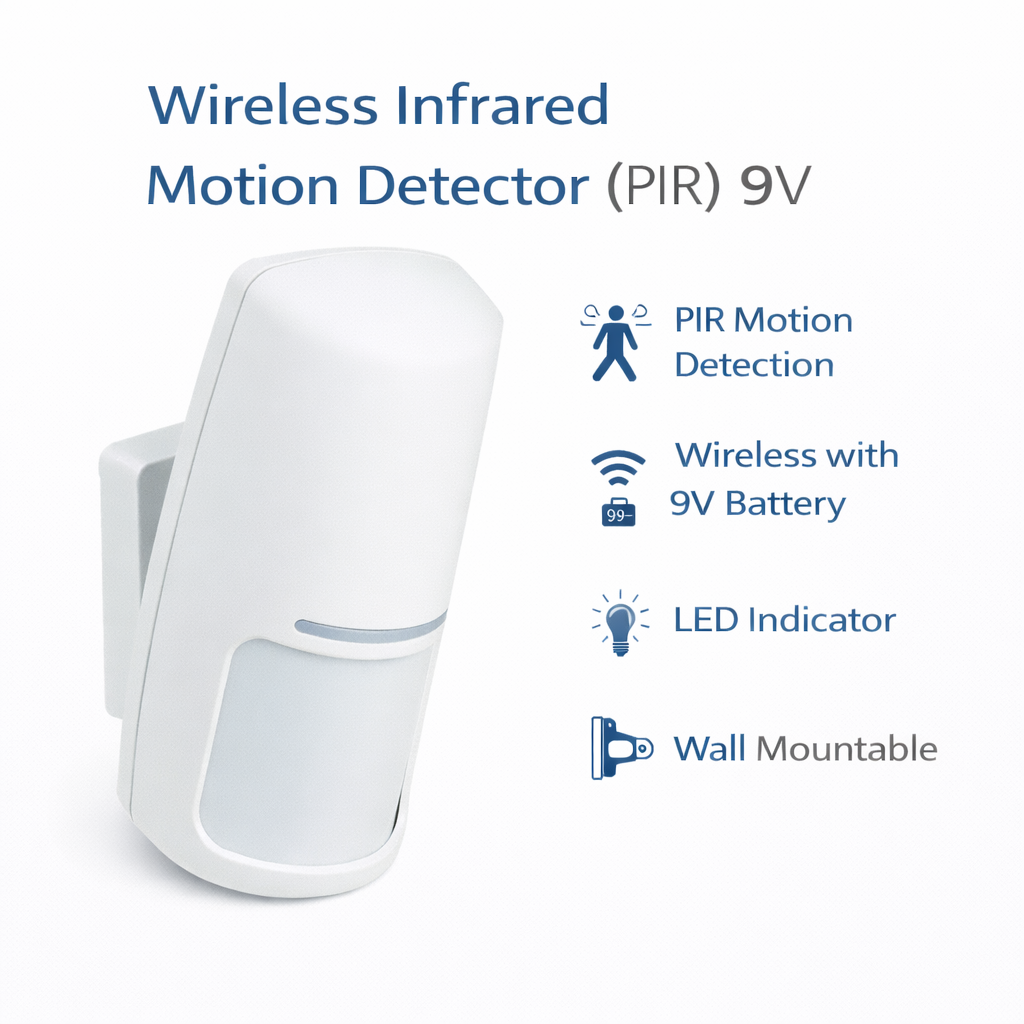 Ο ασύρματος ανιχνευτής κίνησης υπερύθρων (PIR) είναι σχεδιασμένος για την ανίχνευση κίνησης σε εσωτερικούς χώρους, ενισχύοντας την ασφάλεια κατοικιών και επαγγελματικών χώρων. Χρησιμοποιεί τεχνολογία παθητικής υπέρυθρης ανίχνευσης (PIR) για να εντοπίζει αλλαγές στη θερμότητα που εκπέμπεται από ανθρώπους ή αντικείμενα που κινούνται μέσα στον χώρο.