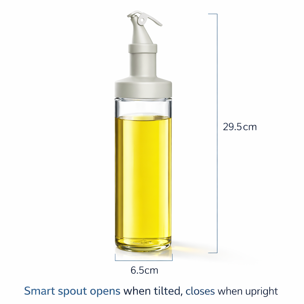 Το δοχείο διανομής λαδιού 510ml είναι μια πρακτική και κομψή λύση για ακριβή χρήση λαδιού και άλλων υγρών στην κουζίνα. Με έξυπνο αυτόματο στόμιο, ανοίγει όταν γέρνετε το μπουκάλι και κλείνει μόλις το επαναφέρετε όρθιο, προσφέροντας απόλυτο έλεγχο χωρίς σταξίματα.
