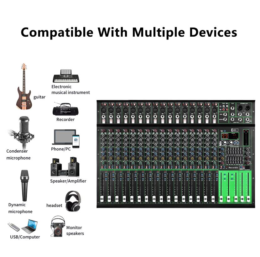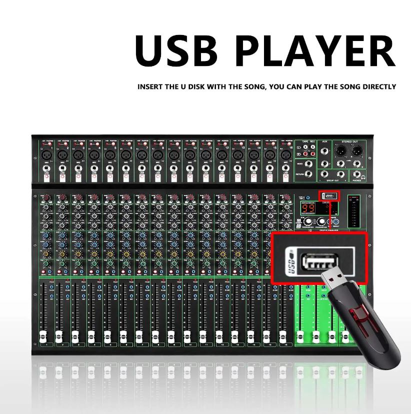 Η επαγγελματική κονσόλα ήχου 16 καναλιών με USB, είναι η απόλυτη οικονομικά προσιτή λύση για live sound, home recording και content creators. Υψηλής ποιότητας, σταθερός, με απλή δομή και εύκολος στη λειτουργία. Παρέχει είσοδο USB για την απευθείας αναπαραγωγή και τον έλεγχο ενός USB Stick.
