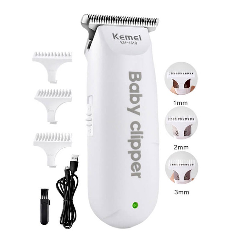 Κουρευτική μηχανή κατάλληλη για χρήση σε βρέφη με 3 ανταλλακτικές κεφαλές. Λεπίδα κοπής από ανοξείδωτο ατσάλι που δεν ερεθίζει το δέρμα. Φορητή συσκευή με επαναφορτιζόμενη μπαταρία λιθίου.