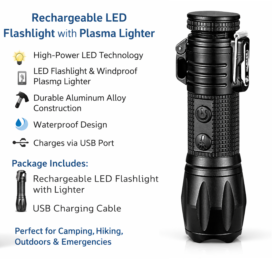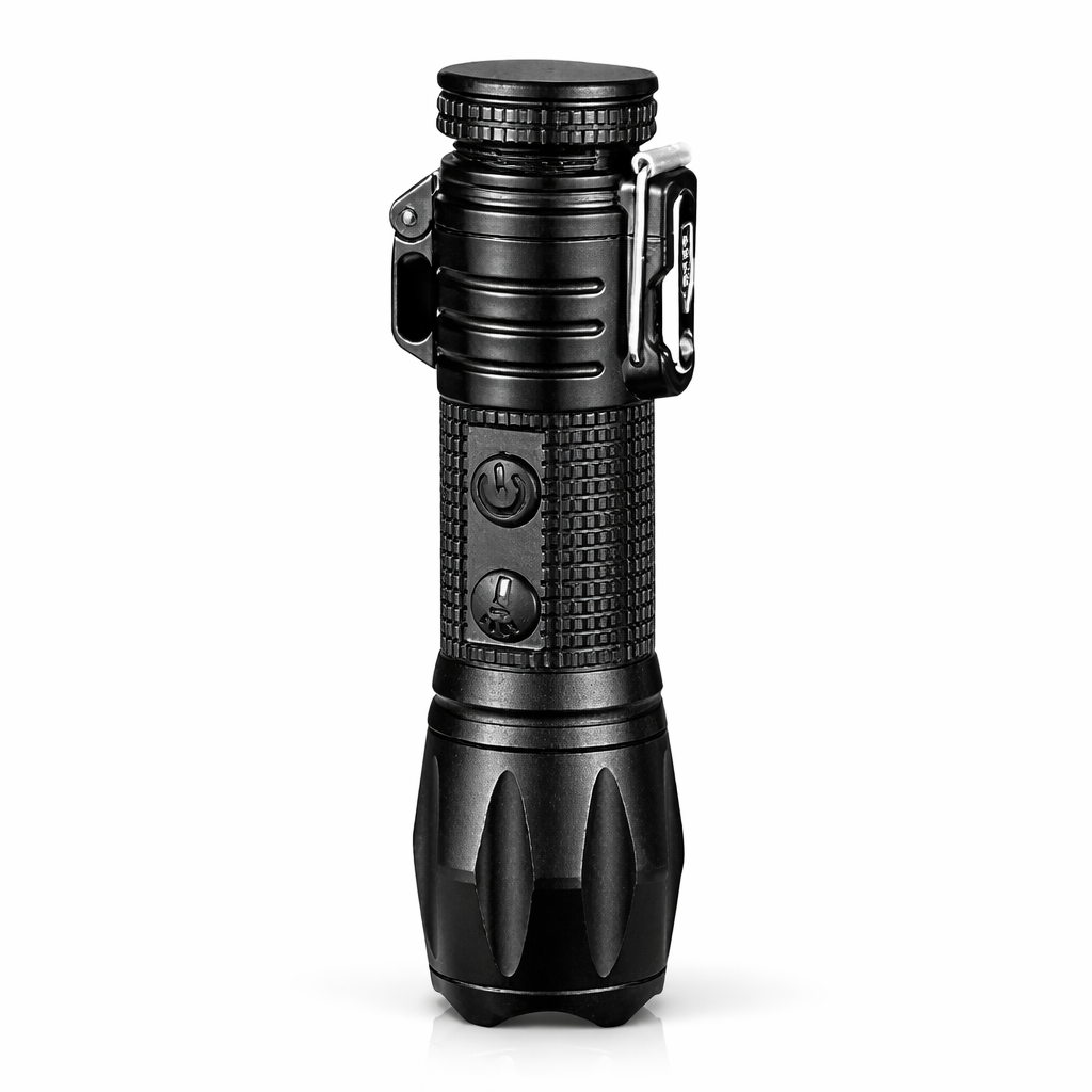 Ο επαναφορτιζόμενος φακός LED είναι ένας πολυλειτουργικός φακός χειρός που συνδυάζει ισχυρό φωτισμό και πρακτική λειτουργία αναπτήρα πλάσματος. Είναι κατάλληλος για καθημερινή χρήση αλλά και για δραστηριότητες όπως camping, πεζοπορία, ταξίδια και καταστάσεις έκτακτης ανάγκης.
