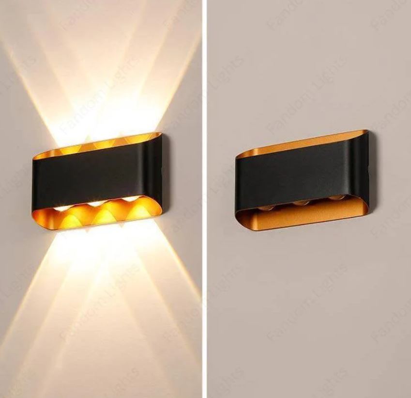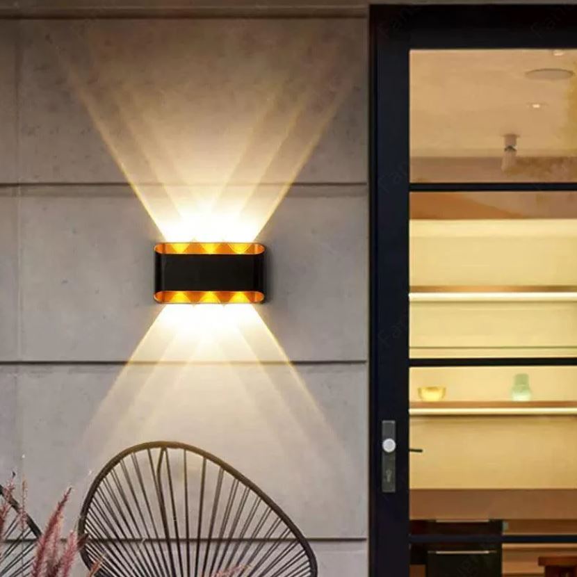 Δώστε στυλ και μοναδική ατμόσφαιρα στον εξωτερικό σας χώρο με το διακοσμητικό φωτιστικό τοίχου 6W σε μαύρο και χρυσό περίβλημα. Συνδυάζει θερμό λευκό φως 3000K με RGB φωτισμό, προσφέροντας επιλογή ανάμεσα σε ζεστό φωτισμό και εντυπωσιακά χρωματικά εφέ, ιδανικό για βεράντες, κήπους και εισόδους.