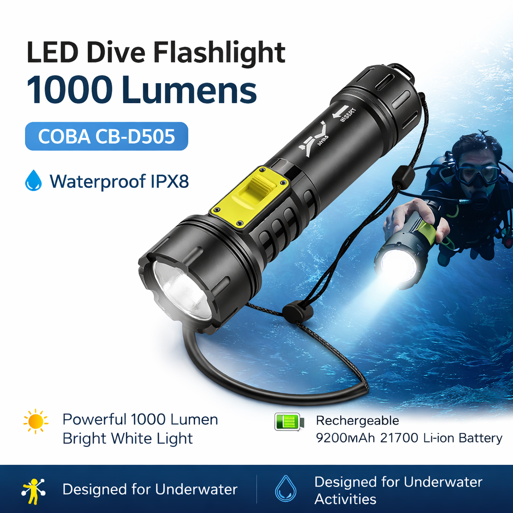 Ο φακός χειρός κατάδυσης είναι σχεδιασμένος για χρήση σε υποβρύχιες δραστηριότητες και απαιτητικές συνθήκες. Προσφέρει ισχυρό λευκό φωτισμό 1000 lumens, εξασφαλίζοντας υψηλή ορατότητα σε χαμηλό φωτισμό ή κάτω από το νερό.