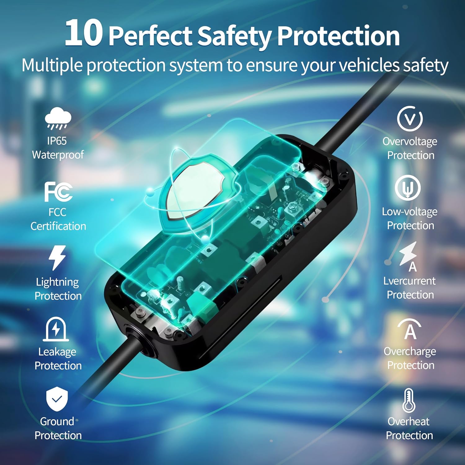 Το εξαιρετικά ανθεκτικό περίβλημα του εγγυάται ευκολία χρήσης και αξιοπιστία. Η ασφάλεια είναι βασικής σημασίας και γι’ αυτόν τον λόγο ο φορτιστής είναι εξοπλισμένος με προηγμένα ηλεκτρονικά συστήματα παρακολούθησης των παραμέτρων φόρτισης του οχήματός σου.