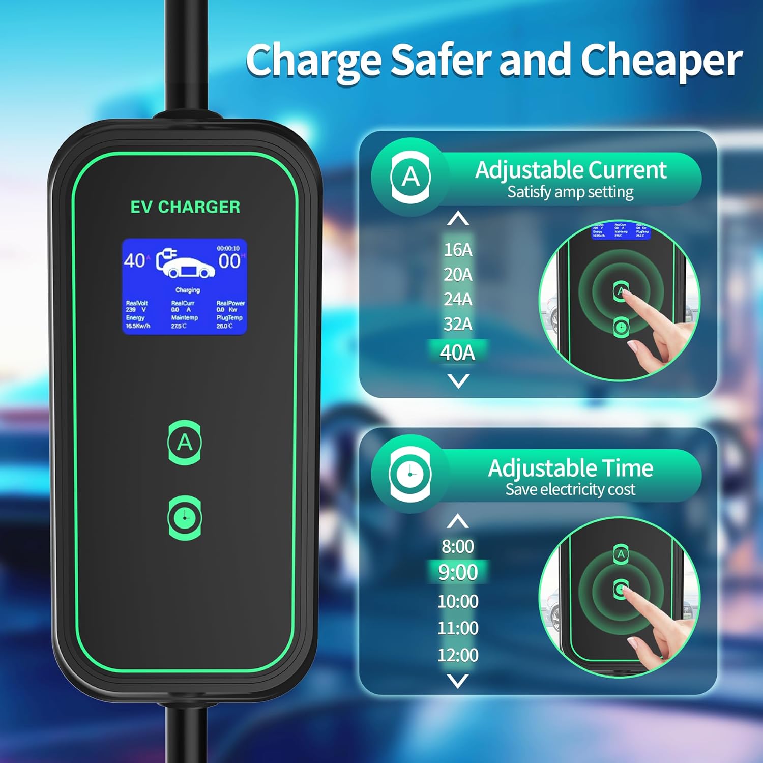 Ο σταθμός φόρτισης EV αντιπροσωπεύει την τέλεια λύση για όσους αναζητούν ένα αξιόπιστο και φορητό σύστημα φόρτισης με κανονική πρίζα Schuko. Διαθέτει οθόνη LCD που επιτρέπει πρόσβαση στις σημαντικότερες παραμέτρους, ενσωματωμένο καλώδιο Type 2 και μοντέρνο, μινιμαλιστικό σχεδιασμό.