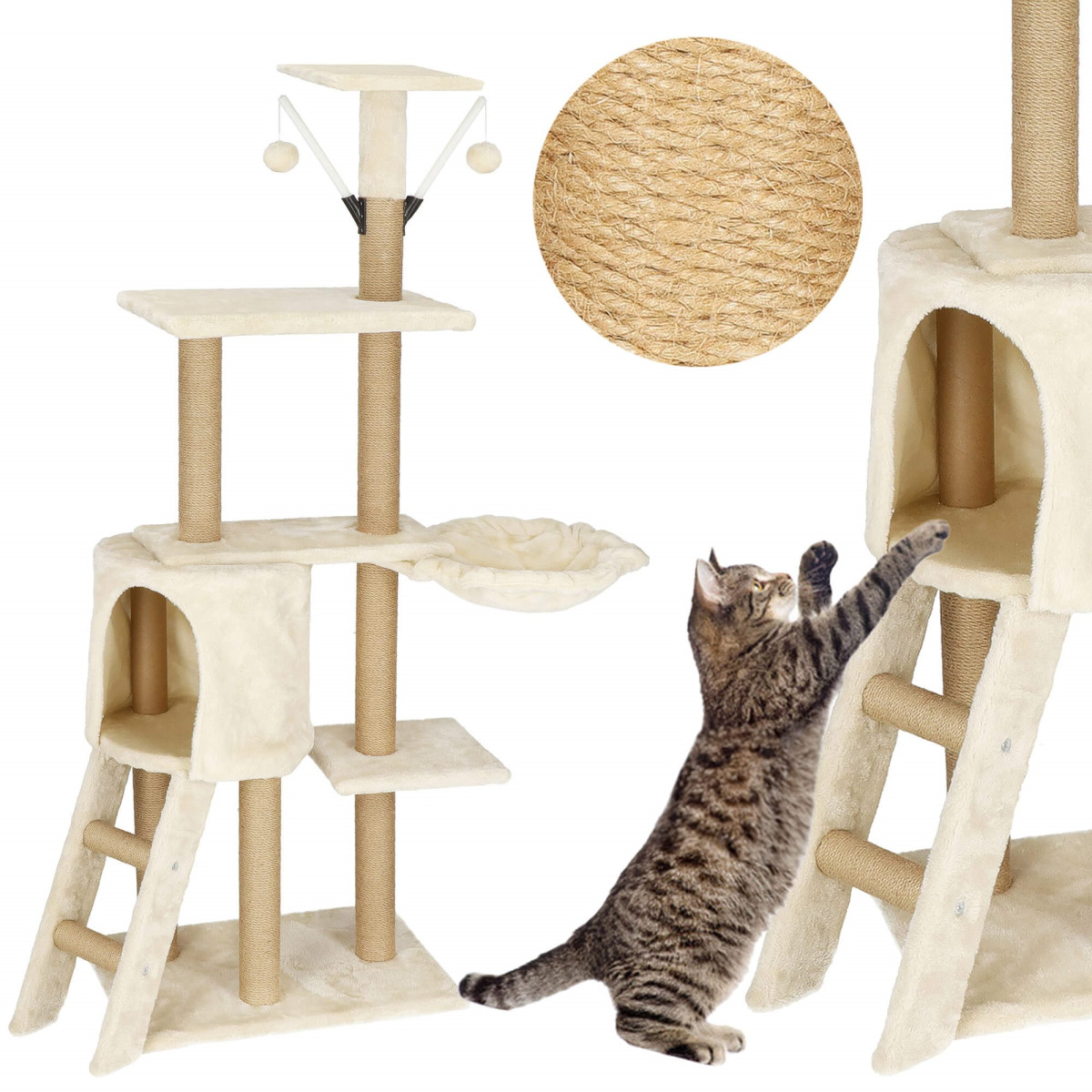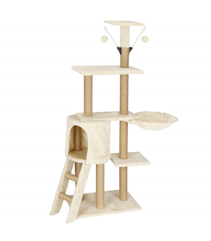 Διαθέτει διάφορες επιφάνειες στις οποίες μπορεί να ξαπλώσει η γάτα σας, καθώς και ένα αναπαυτικό σπιτάκι / κρεβατάκι και μια αιώρα. Το ευρύχωρο ονυχοδρόμιο ενδείκνυται ιδανικά για ξεκούραση και ανάπαυση. Στους κορμούς του δέντρου η γάτα σας μπορεί να ξύσει τα νύχια της. Οι κορμοί είναι τυλιγμένοι με φυσικό σιζάλ και λούτρινο ύφασμα. Είναι πολύ σταθερό και επομένως είναι κατάλληλο και για μεγαλόσωμες φυλές.