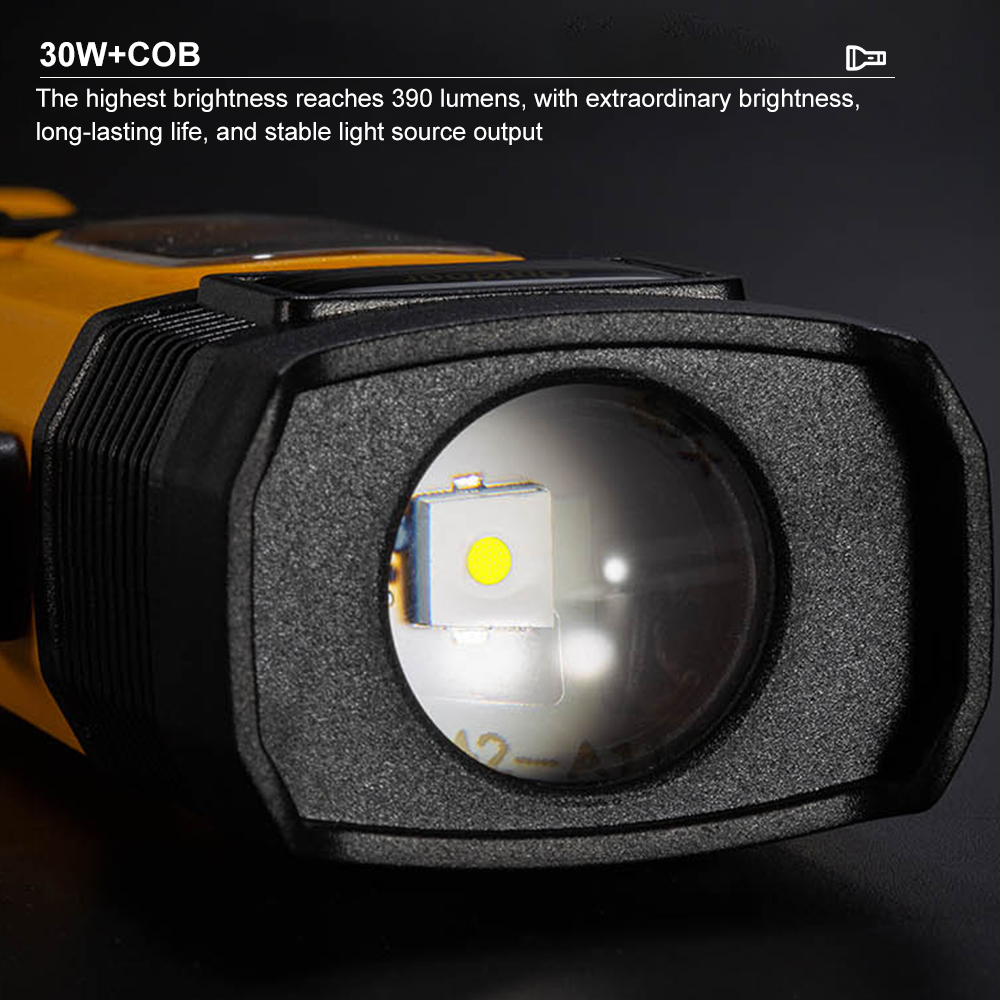 Διαθέτει κύριο φακό 2500LM με τρεις λειτουργίες (ισχυρό, αδύναμο, flash) και πλευρικό φωτισμό COB με τέσσερις επιλογές για διάχυτο φως εργασίας. Η ανθεκτική κατασκευή από αλουμίνιο αεροναυπηγικής προσφέρει αυξημένη αντοχή, ενώ η ενσωματωμένη επαναφορτιζόμενη μπαταρία παρέχει 3–8 ώρες λειτουργίας και δυνατότητα Power Bank για φόρτιση συσκευών. Το ηλιακό πάνελ προσθέτει αυτονομία σε περιβάλλοντα χωρίς ρεύμα.