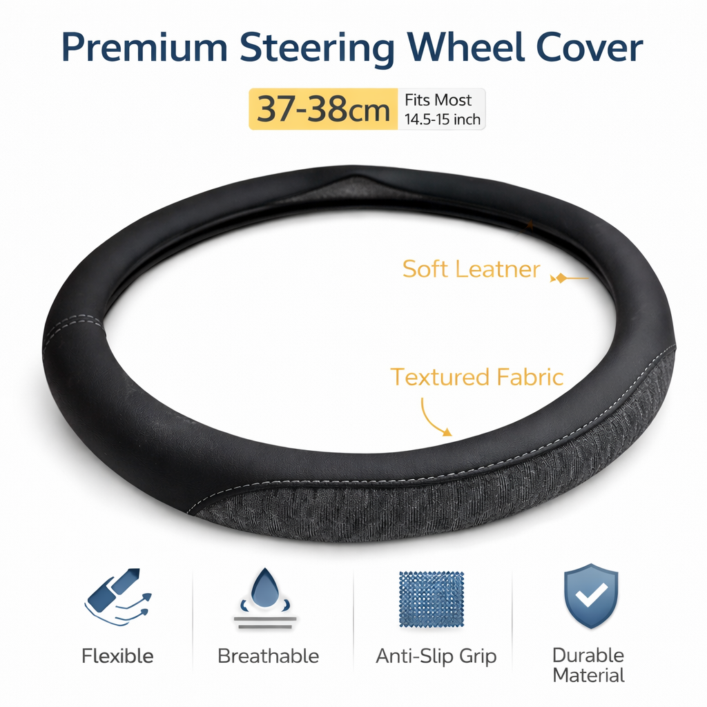 Το κάλυμμα τιμονιού 37–38cm προσφέρει καλύτερο κράτημα και μεγαλύτερη άνεση κατά την οδήγηση. Είναι σχεδιασμένο για να προστατεύει το τιμόνι από φθορά, ιδρώτα και καθημερινή χρήση, ενώ παράλληλα βελτιώνει την αίσθηση χειρισμού.