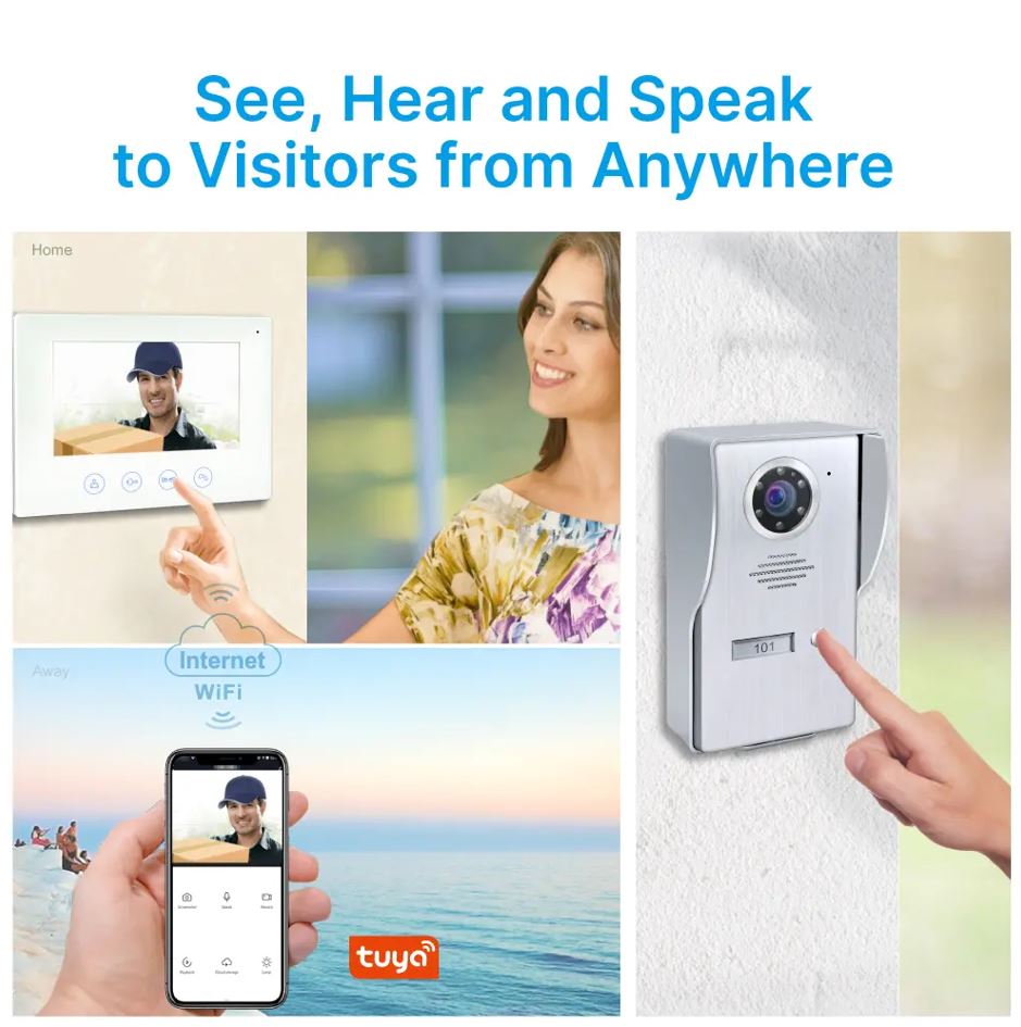 Σετ θυροτηλεόρασης με κάμερα και οθόνη που επιτρέπει την επίβλεψη του περιβάλλοντα χώρου. Μπορεί να συνδεθεί με άλλες έξυπνες συσκευές μέσω Wi-Fi. Με καλύτερη ανάλυση από 800TV και 1200TV και δυνατότητα νυχτερινής λήψης.