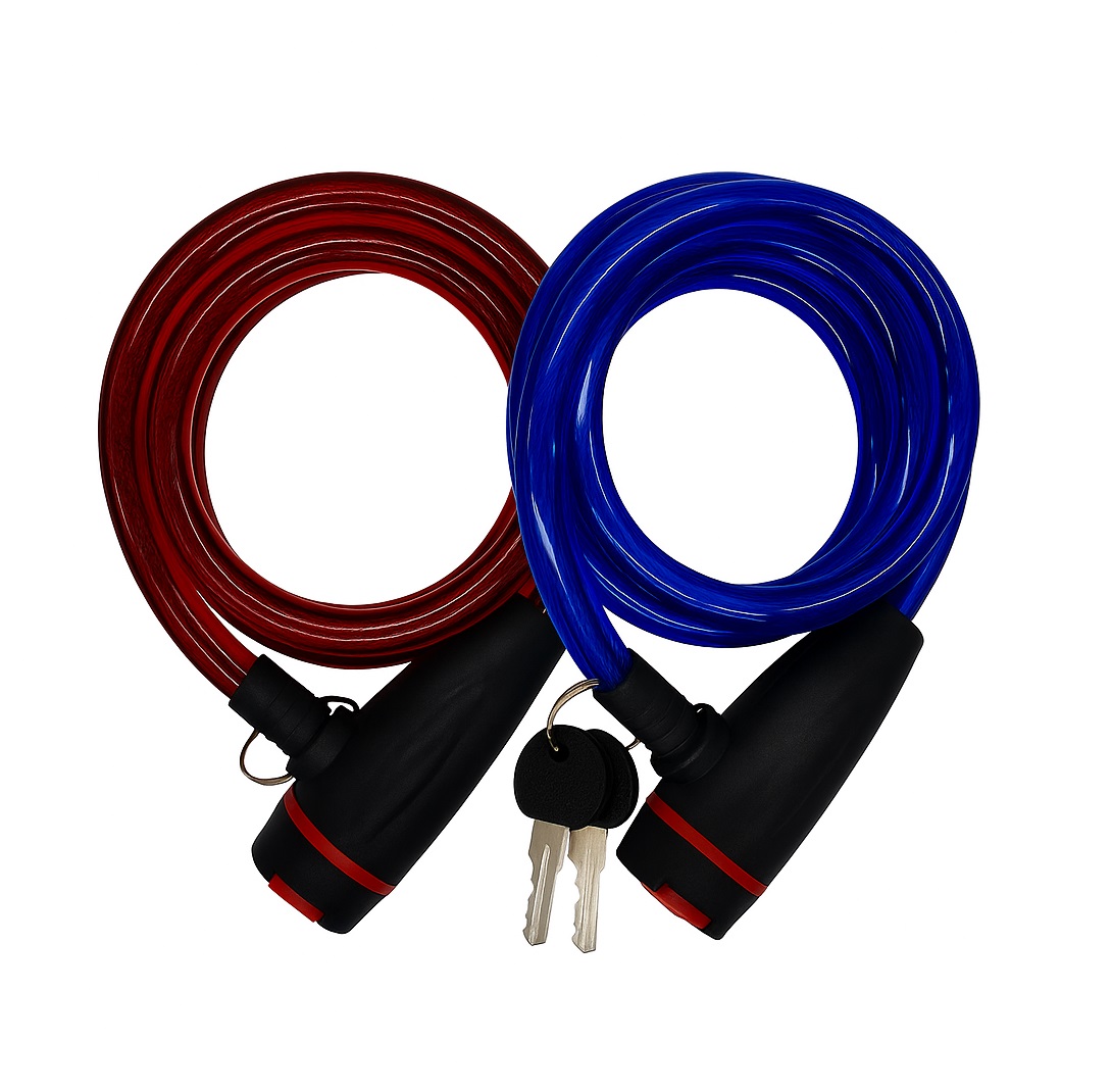 Ανθεκτική κλειδαριά κουλούρα για ποδήλατα και μοτοσικλέτες με διάφανη επίστρωση για μοντέρνα εμφάνιση και προστασία από φθορές. Το χαλύβδινο αυτοτυλιγόμενο καλώδιο εξασφαλίζει αντοχή και ευκολία στη χρήση, προσφέροντας ασφάλεια για κάθε μετακίνηση.