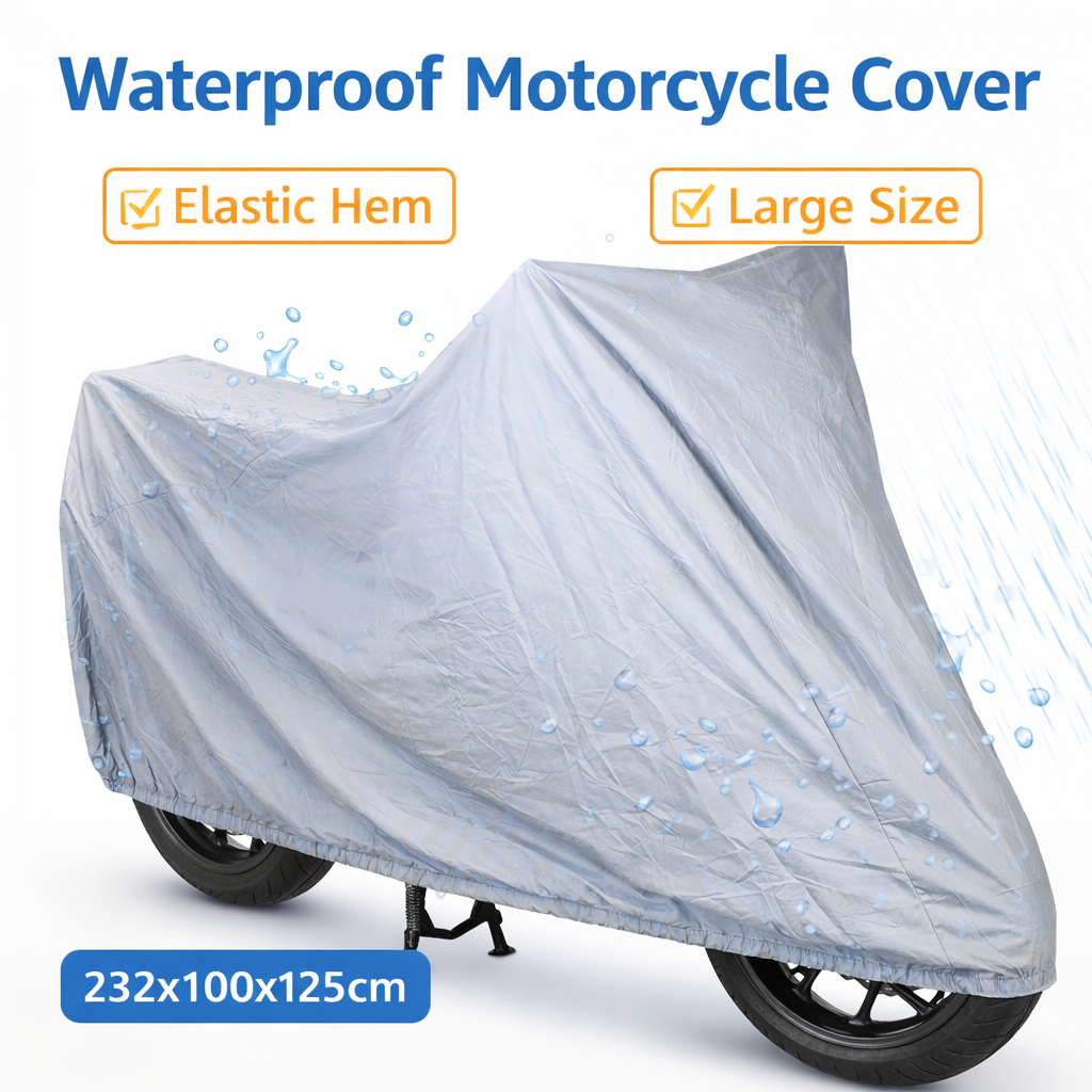 Η κουκούλα μηχανής αδιάβροχη Large 232×100×125cm προσφέρει πλήρη προστασία από βροχή, σκόνη, ήλιο και ρύπους. Κατάλληλη για καθημερινή χρήση σε εξωτερικούς και εσωτερικούς χώρους, συμβάλλει στη διατήρηση της μοτοσυκλέτας σε άριστη κατάσταση.