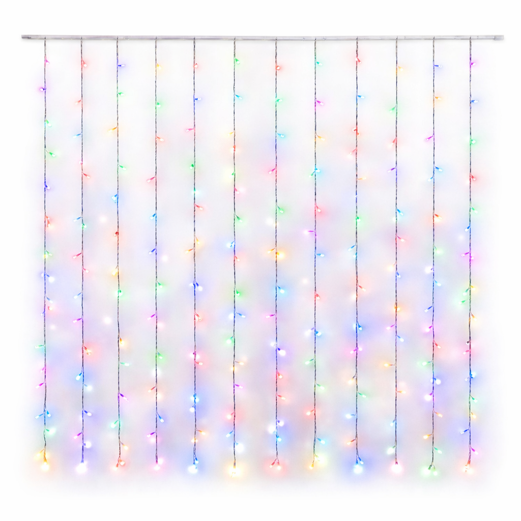 Η κουρτίνα λαμπάκια LED 3x1m με 100 RGB φωτάκια είναι ιδανική για εντυπωσιακή διακόσμηση εσωτερικών χώρων, προσφέροντας πολύχρωμο φωτισμό που δημιουργεί ζωντανή και ευχάριστη ατμόσφαιρα. Είναι κατάλληλη για διακόσμηση σπιτιού, πάρτι, εκδηλώσεις, γενέθλια και εορταστικές περιστάσεις.