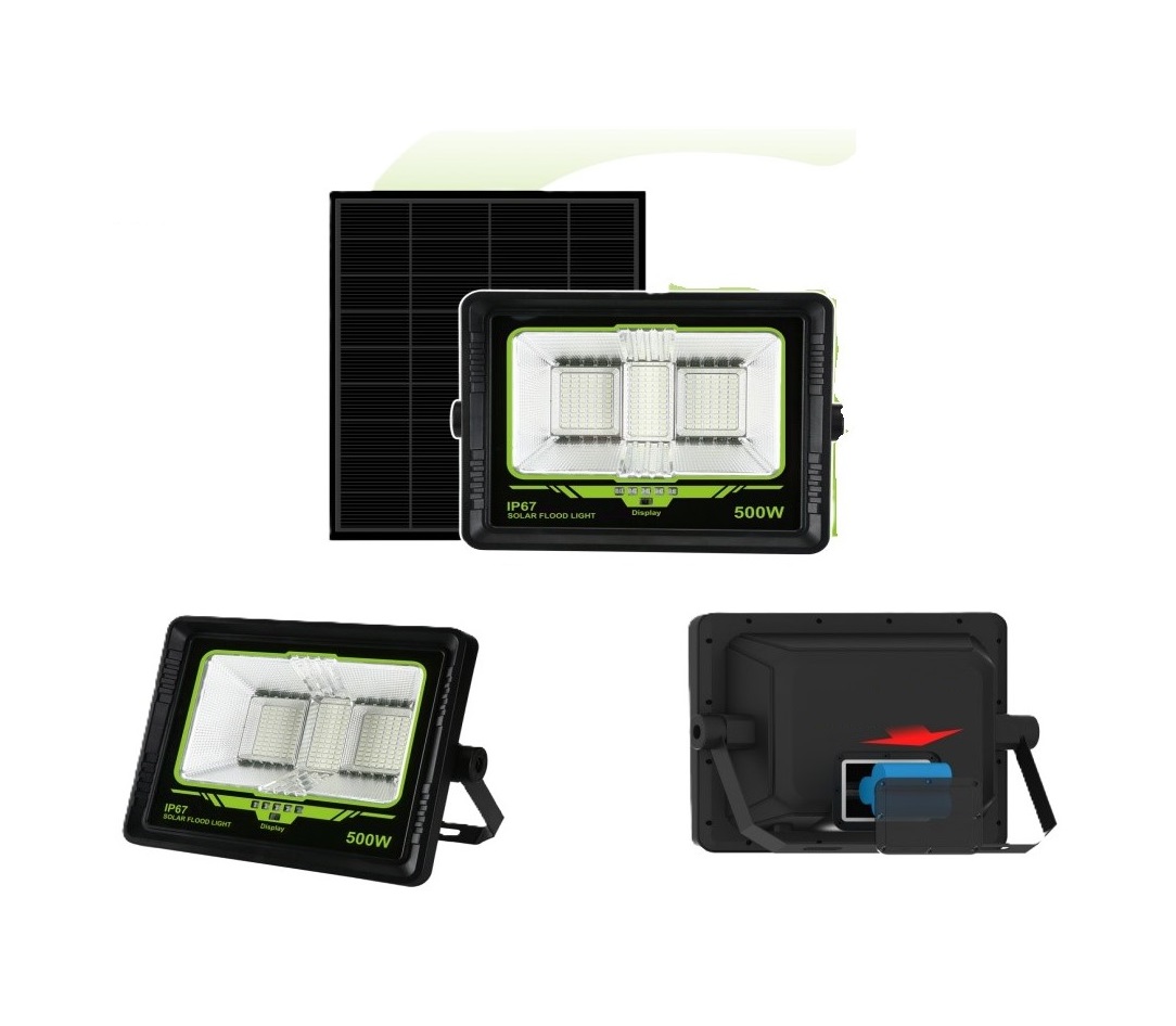 Led Αδιάβροχος Ηλιακός Προβολέας 500W Με Πάνελ