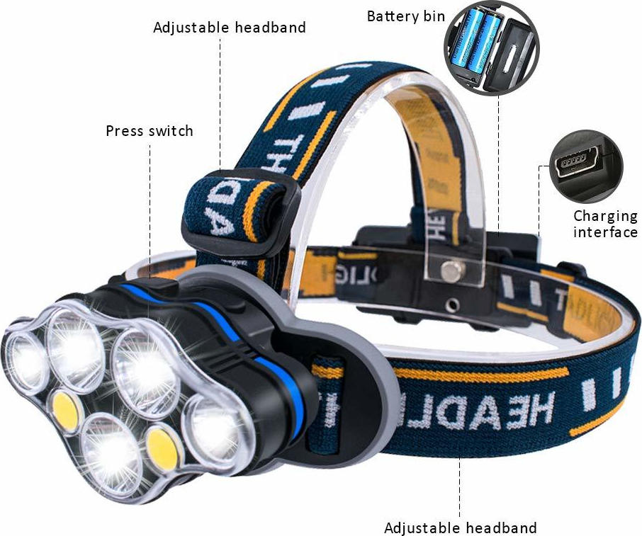 LED επαναφορτιζόμενος φακός κεφαλής με ψυχρό λευκό και κόκκινο φωτισμό. Φορτίζει μέσω USB καλωδίου (περιλαμβάνεται) και διαθέτει αποσπώμενες επαναφορτιζόμενες μπαταρίες Li-ion 18650 (περιλαμβάνονται). Έχει φωτεινότητα 3000 lumens με εμβέλεια φωτισμού 10m έως 100m. Διαθέτει 8 λειτουργίες φωτισμού.