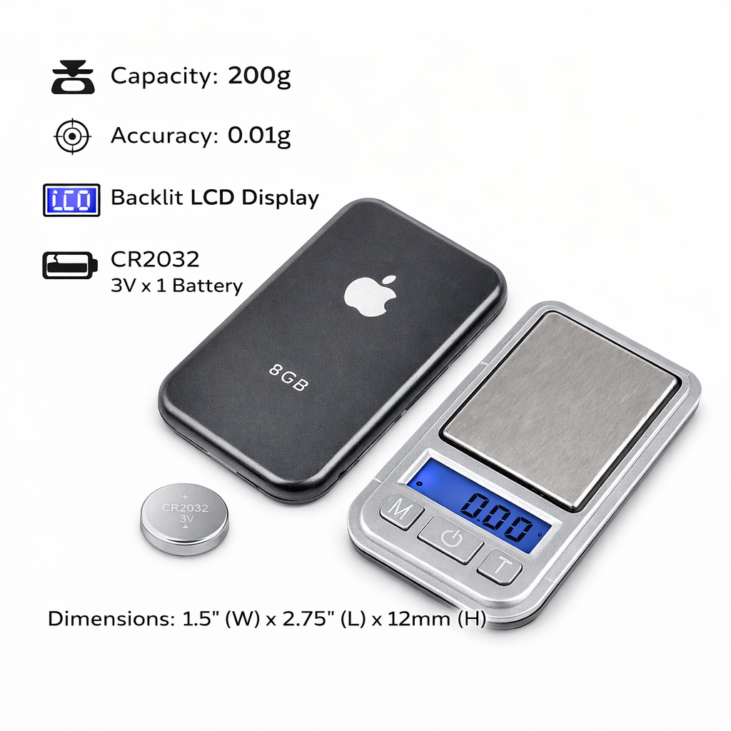 Η mini ψηφιακή ζυγαριά ακριβείας 0.01gr – 200gr είναι ιδανική για όσους χρειάζονται απόλυτη ακρίβεια μέτρησης σε μικρά βάρη. Κατάλληλη για κοσμήματα, πολύτιμους λίθους, βότανα, εργαστηριακή χρήση ή συλλεκτικά αντικείμενα, προσφέρει αξιόπιστα αποτελέσματα με απόκλιση μόλις 0,01g.