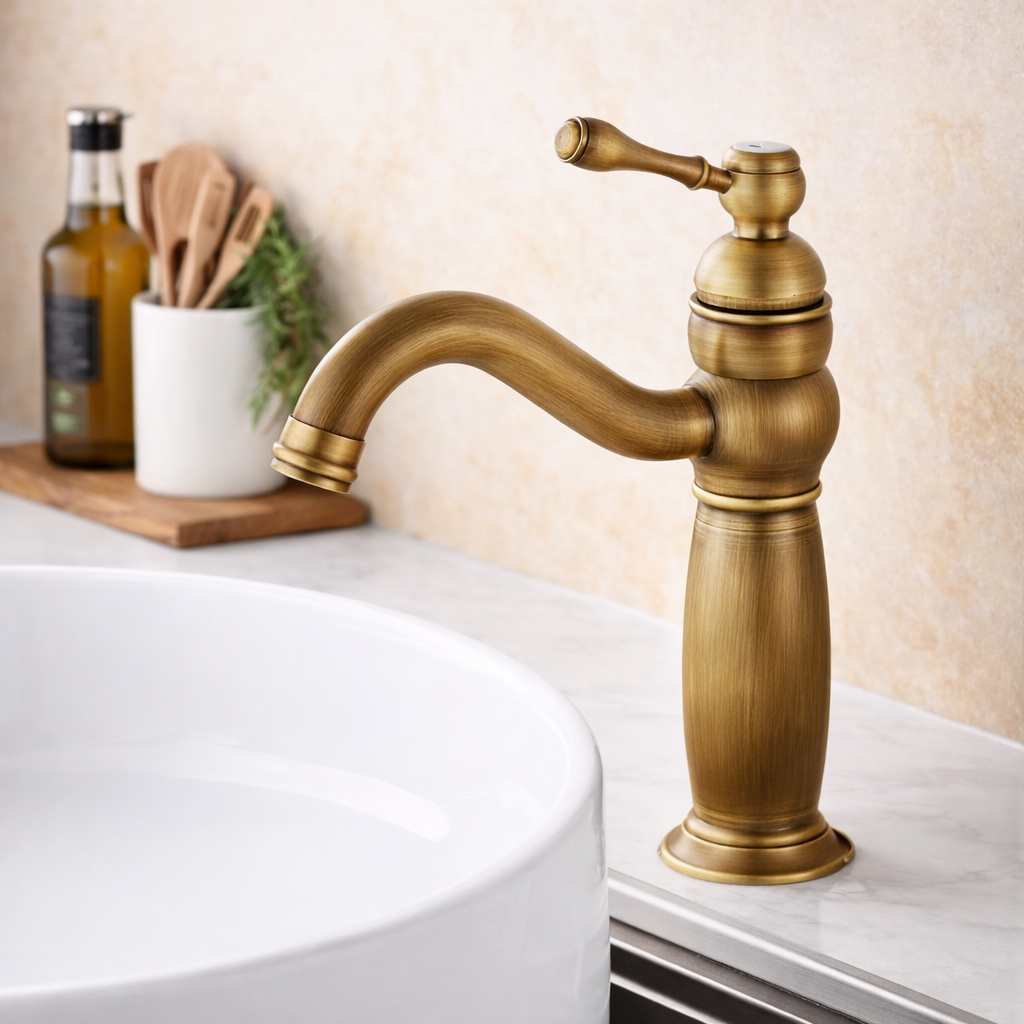 Κατάλληλη για όσους αναζητούν ρετρό μπρονζέ μπαταρία κουζίνας μίας οπής με αναμεικτικό μηχανισμό, για λειτουργική και αισθητική αναβάθμιση του χώρου.