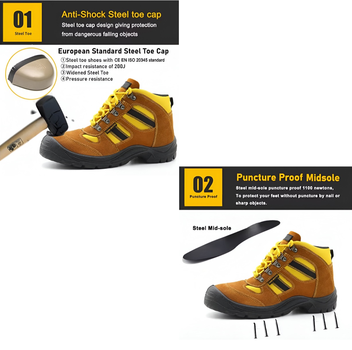 Ανθεκτικά μποτάκια εργασίας σχεδιασμένα για μέγιστη ασφάλεια, άνεση και προστασία σε απαιτητικά περιβάλλοντα. Με χοντρό αντιολισθητικό πάτο και αδιάβροχη κατασκευή, προσφέρουν σταθερό πάτημα, αντοχή στη διάτρηση και ηλεκτροστατική προστασία. Ιδανικά για εργοτάξια, βιομηχανικούς χώρους και εξωτερική εργασία.