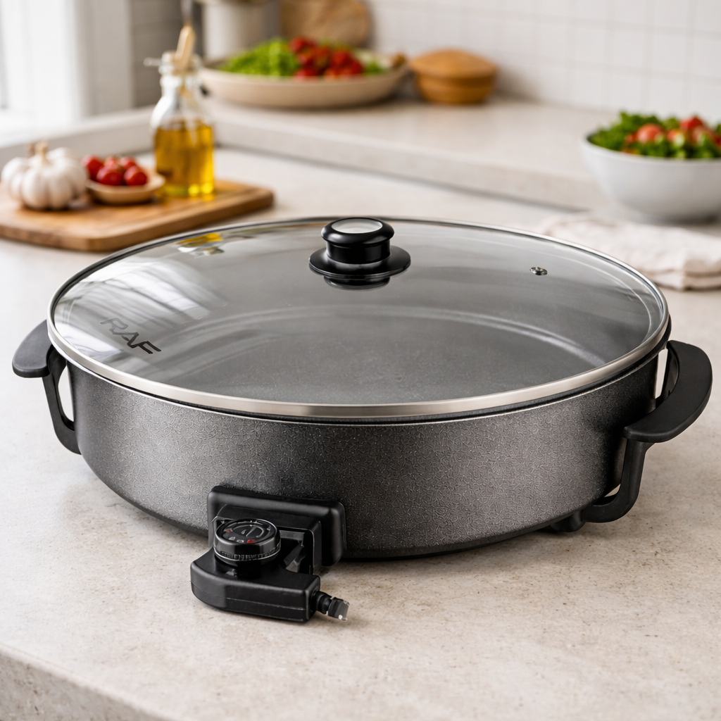 Η ρυθμιζόμενη θερμοκρασία έως 240°C επιτρέπει απόλυτο έλεγχο ψησίματος, καλύπτοντας διαφορετικούς τύπους ζύμης και συνταγών. Η διπλή αντικολλητική επίστρωση αποτρέπει το κόλλημα και διευκολύνει τον καθαρισμό, ενώ το πλήρες γυάλινο καπάκι επιτρέπει οπτικό έλεγχο χωρίς απώλεια θερμότητας.