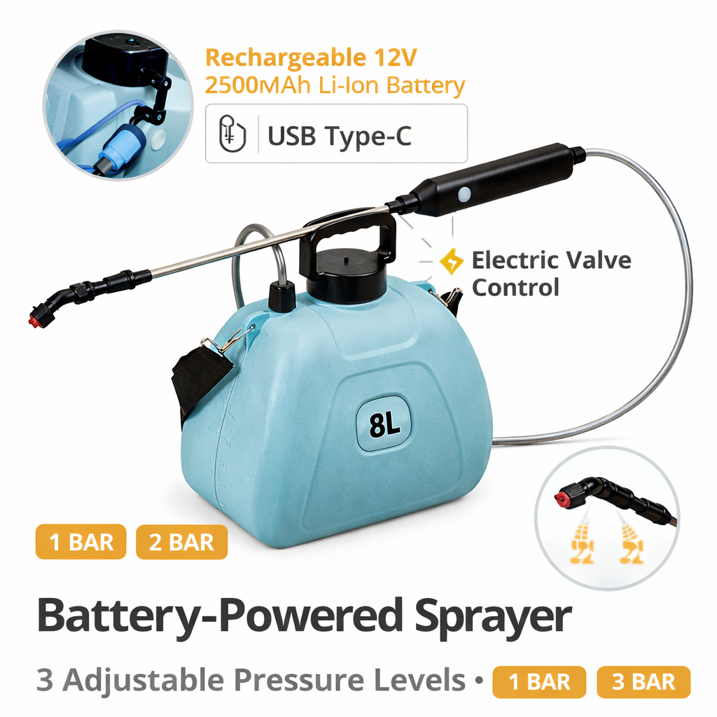 Ψεκαστήρας Μπαταρίας 8Lt με Ηλεκτρική Βαλβίδα USB-C
