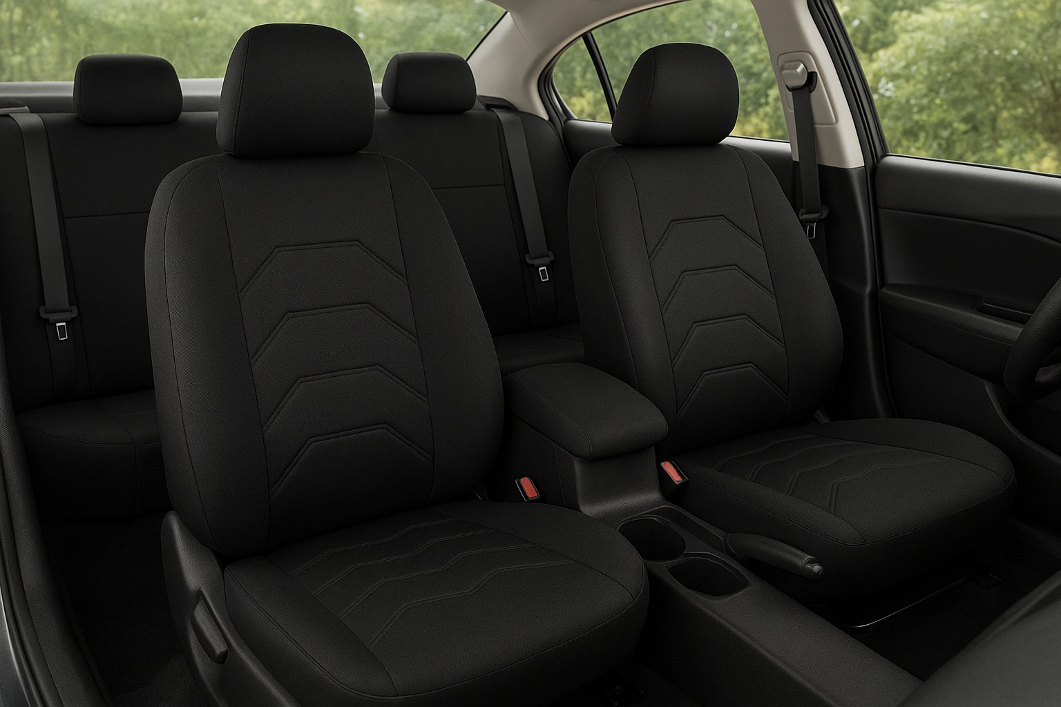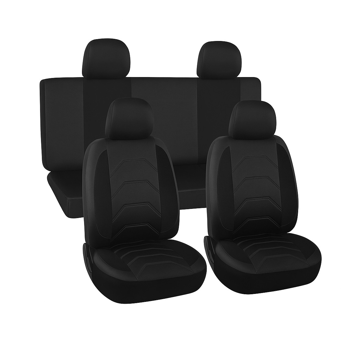 Το σετ καλύπτει πλήρως τα μπροστινά και πίσω καθίσματα, καθώς και τα προσκέφαλα, εξασφαλίζοντας ομοιόμορφο και καλαίσθητο αποτέλεσμα.