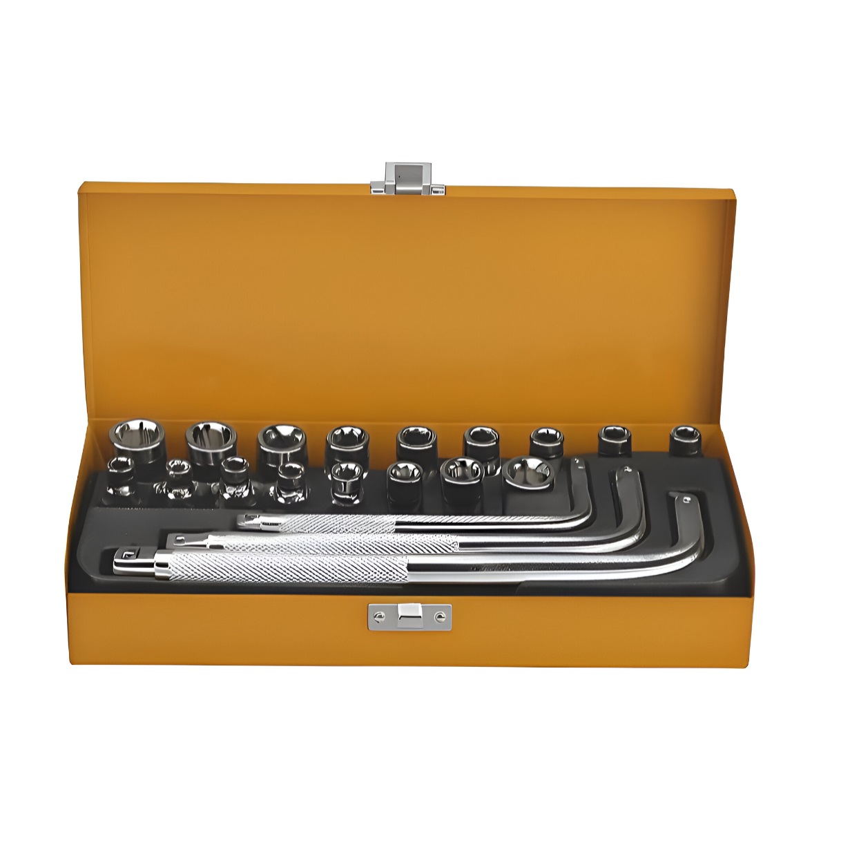 Πλήρες σετ εργαλείων για επαγγελματική και οικιακή χρήση, ιδανικό για επισκευές, συναρμολογήσεις και συντήρηση μηχανών ή οχημάτων. Το σετ περιλαμβάνει καρυδάκια σε διάφορα μεγέθη και κλειδιά τύπου “L” για εύκολη και γρήγορη χρήση σε κάθε εφαρμογή.
