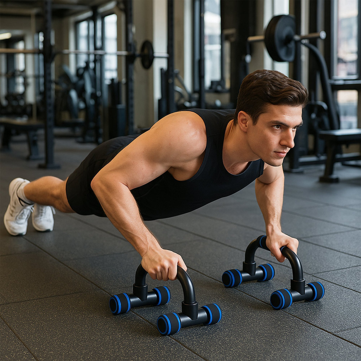 Οι λαβές Push Ups (Push-Up Stand) σετ 2 τεμαχίων είναι σχεδιασμένες για ασφαλή και πιο αποδοτική εκτέλεση κάμψεων, μειώνοντας σημαντικά την πίεση στους καρπούς και βελτιώνοντας τη στάση του σώματος κατά την άσκηση. Προσφέρουν μεγαλύτερο εύρος κίνησης και καλύτερη ενεργοποίηση του στήθους, των ώμων και των τρικεφάλων.