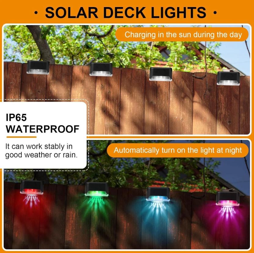 Προσθέστε μοναδική ατμόσφαιρα στον εξωτερικό σας χώρο με αυτό το σετ 4 ηλιακών φωτιστικών RGB. Χάρη στη λειτουργία αυτόματης εναλλαγής χρωμάτων, τα φωτάκια δημιουργούν εντυπωσιακά εφέ φωτισμού, ιδανικά για σκάλες, διαδρόμους, αυλές και κήπους.