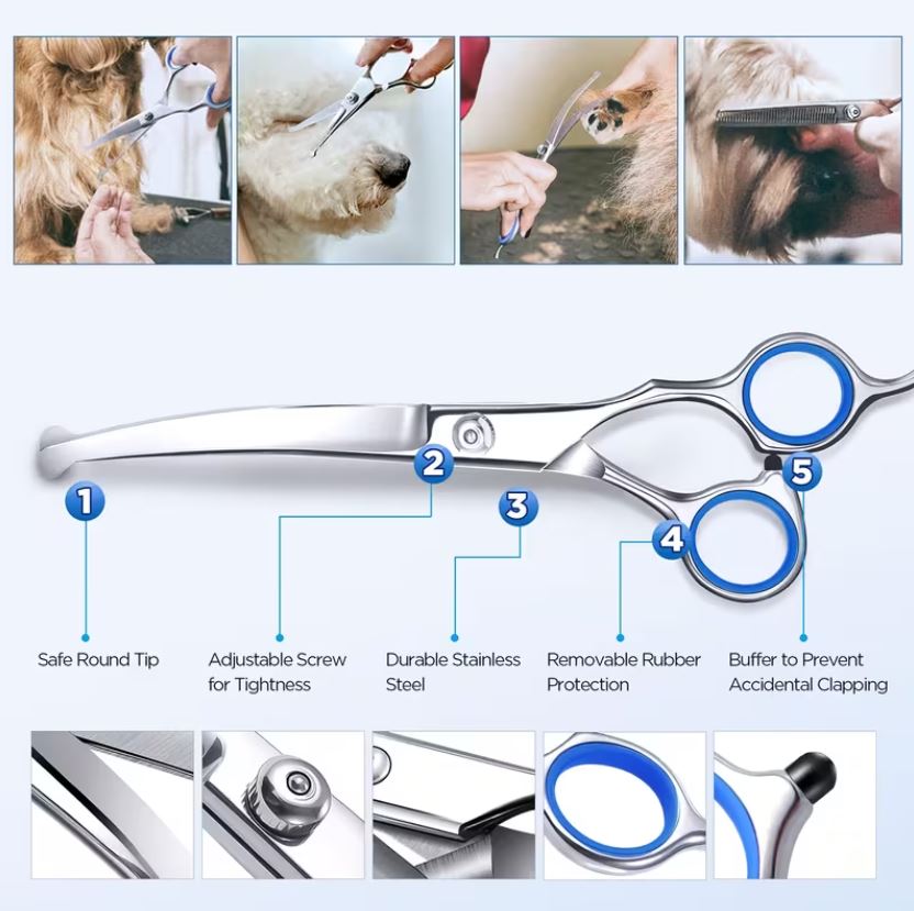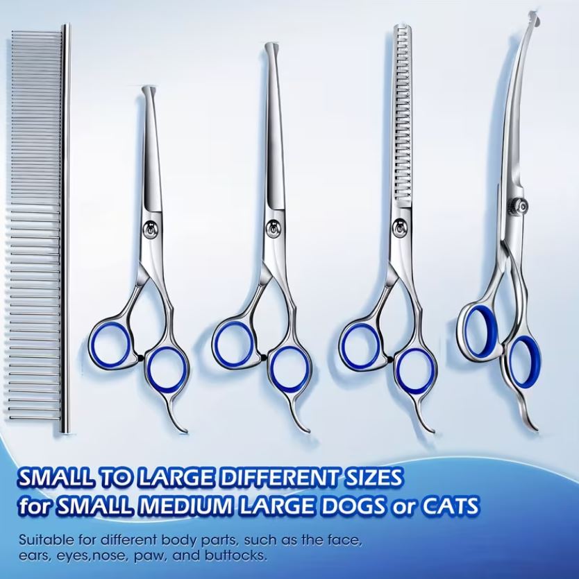 Το σετ ψαλιδιών για καλλωπισμό κατοικιδίων είναι σχεδιασμένο για ακριβή, ασφαλή και άνετο grooming στο σπίτι, καλύπτοντας βασικές και πιο απαιτητικές ανάγκες περιποίησης. Απευθύνεται τόσο σε ιδιοκτήτες κατοικιδίων όσο και σε επαγγελματίες groomers που θέλουν ευελιξία και έλεγχο στο αποτέλεσμα.