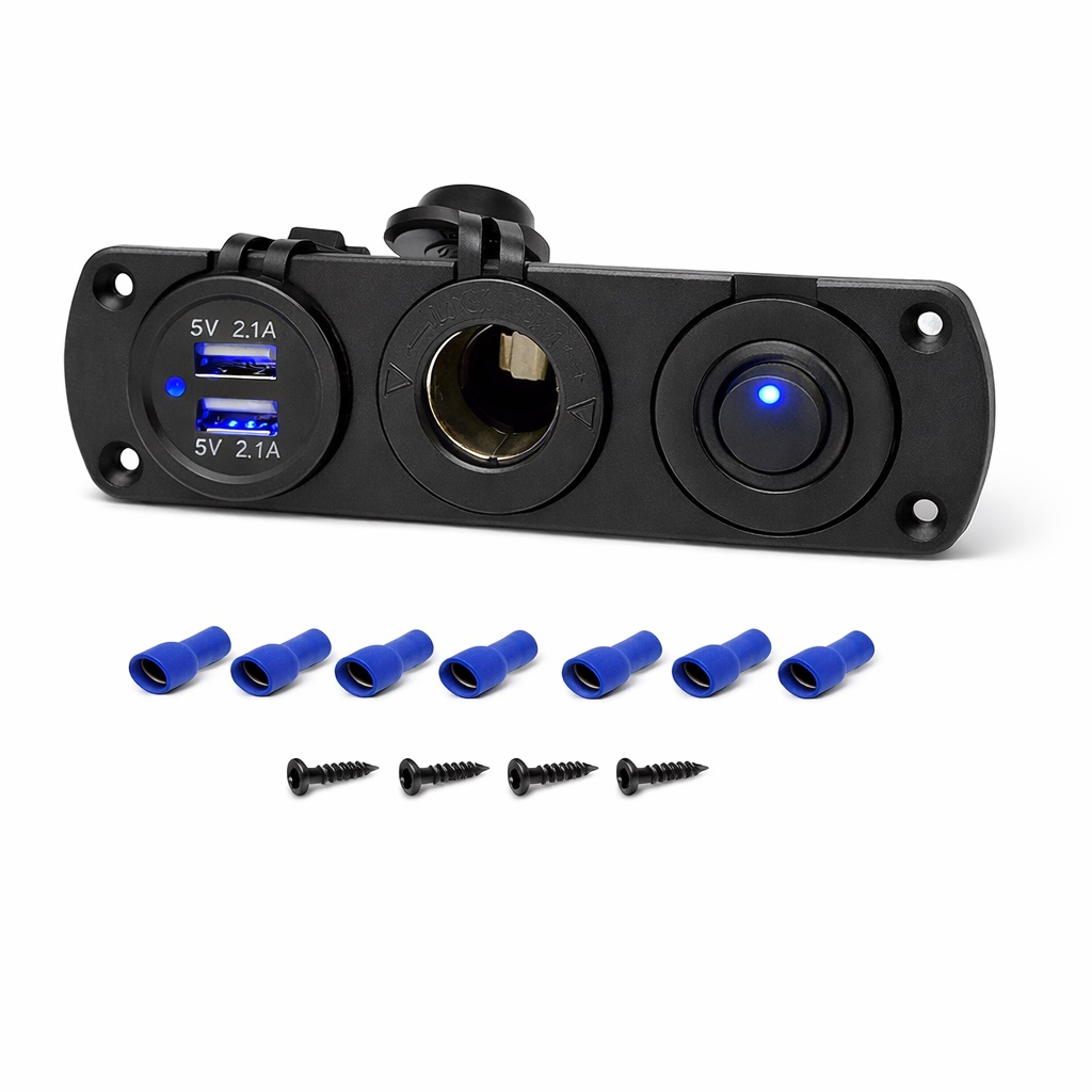 Οι δύο θύρες USB επιτρέπουν τη φόρτιση κινητών τηλεφώνων, GPS, power banks και άλλων ηλεκτρονικών συσκευών, ενώ η θύρα αναπτήρα 12V παραμένει διαθέσιμη για συσκευές όπως τρόμπες, φορτιστές, ψυγεία αυτοκινήτου και άλλα αξεσουάρ.