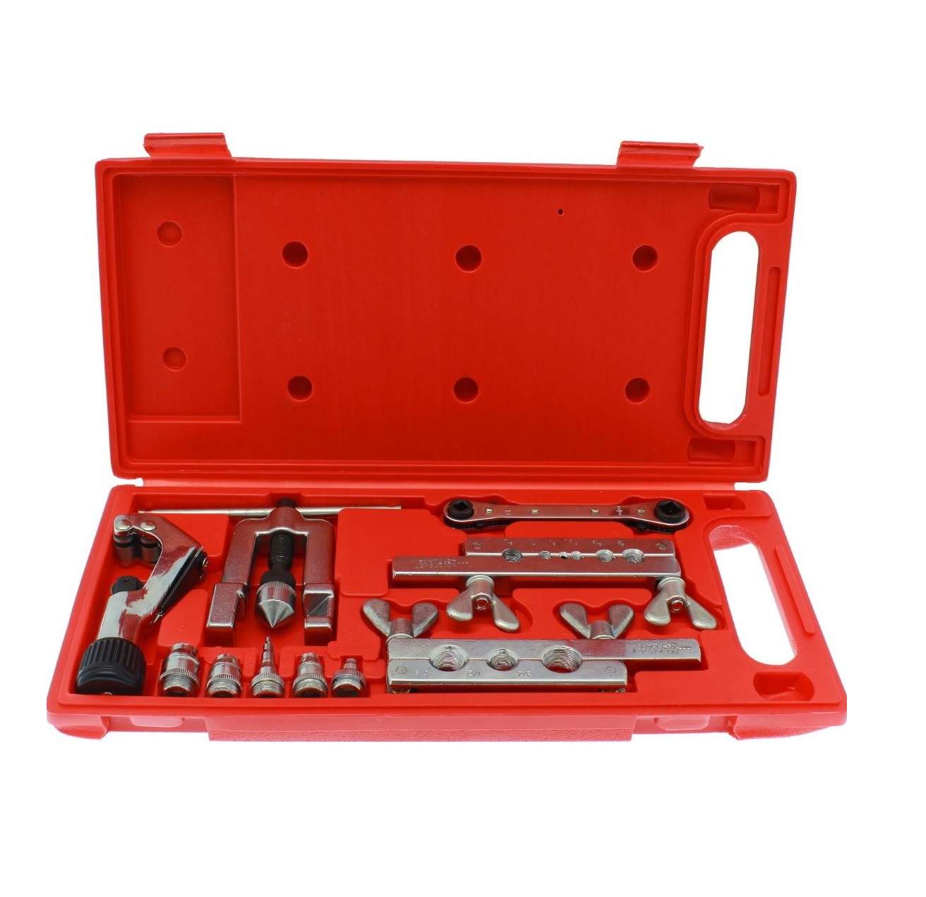 Σετ Εκτονωτές Χαλκοσωλήνων 10τμχ Με Κόφτη Και Κλειδί. Περιλαμβάνει εκχειλωτικό για διατομές, πλάκα εκχείλωσης μικρή και μεγάλη, καβαλάρη, ζουμπάδες εκτόνωσης, κόφτη χαλκοσωλήνα και κλειδί καστάνιας. Σε πλαστική κασετίνα για εύκολη μεταφορά και φύλαξη.