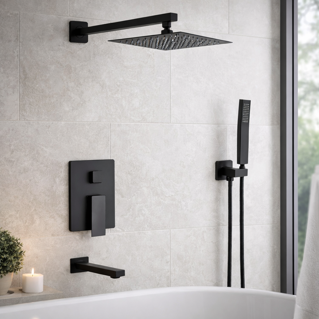 Το σετ ντους με μπαταρία μαύρο ματ αποτελεί ολοκληρωμένη λύση για σύγχρονο μπάνιο, συνδυάζοντας minimal αισθητική με πρακτική λειτουργικότητα. Το ματ φινίρισμα προσφέρει μοντέρνα εμφάνιση και αντοχή στη χρήση.