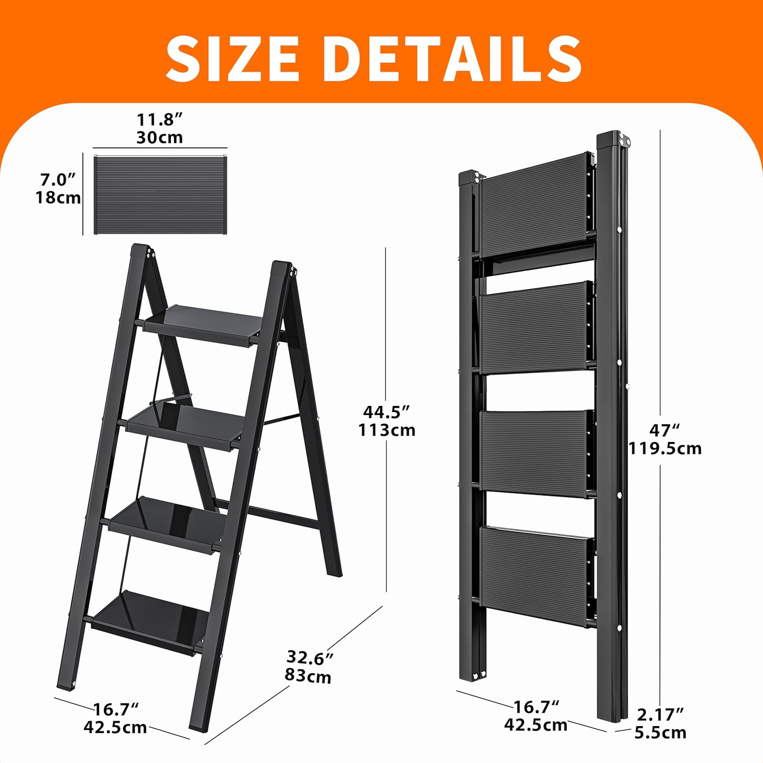 Ιδανικό για μικροεπισκευές, καθαρισμό, αλλαγή λαμπτήρων και πολλές άλλες χρήσεις, το σκαλοσκαμπό 4 σκαλιών συνδυάζει λειτουργικότητα και ποιότητα για μέγιστη απόδοση με ασφάλεια.