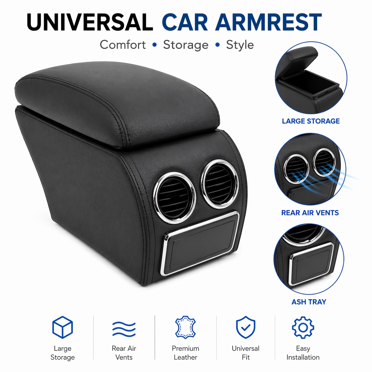 Η κατασκευή από δερματίνη προσφέρει απλή και καθαρή αισθητική, ενώ το υπερυψωμένο μπράτσο και το επεκτεινόμενο καπάκι συμβάλλουν σε πιο άνετη στήριξη κατά τη χρήση. Διαθέτει εσωτερικό αποθηκευτικό χώρο για μικροαντικείμενα, καθώς και σταχτοδοχείο, καλύπτοντας βασικές ανάγκες καθημερινής χρήσης μέσα στο αυτοκίνητο.