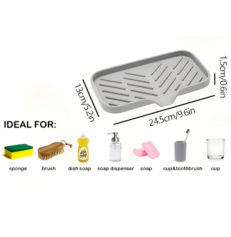 Οργανώστε τον νεροχύτη σας εύκολα και πρακτικά με αυτήν τη βάση σιλικόνης πολλαπλών χρήσεων. Ιδανική για σφουγγάρια, βούρτσες και άλλα αξεσουάρ κουζίνας, διατηρεί τα αντικείμενα καθαρά και στεγνά, ενώ η αποστραγγιζόμενη σχεδίασή της εξασφαλίζει ότι το νερό δεν συσσωρεύεται. Εύκολη στη χρήση, φορητή και επαναχρησιμοποιούμενη, προσφέρει μια κομψή και λειτουργική λύση για κάθε κουζίνα.