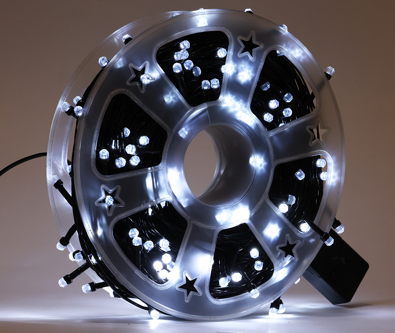 Χριστουγεννιάτικα Λαμπάκια IP44 50m σε ψυχρό λευκό χρώμα. Πανέμορφα Χριστουγεννιάτικα φωτάκια ιδανικά για να στολίσετε το σπίτι σας εσωτερικά ή εξωτερικά! Μπορούν να τοποθετηθούν και σε εξωτερικό χώρο, αρκεί να είναι πλήρως προστατευμένες από τις καιρικές συνθήκες η υποδοχή.